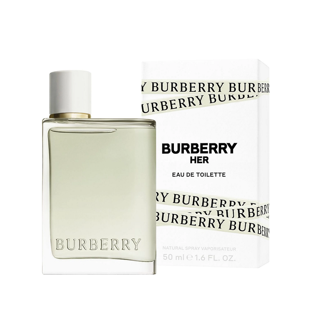 Her Eau de Toilette for women, the free-spirited Burberry scent. A gourmand fragrance balancing joyful fruity notes over an addictive drydown. For the bold modern woman who loves adventure. Her Eau de Toilette for women is a playful blend of blooming peony, joyful green pear top notes, strawberry, blackcurrant and pink peppercorn. Enhanced with a honeysuckle heart, lily of the valley and rose, the fruity floral scent is softened by an addictive musk and cedarwood base. With the powerfully feminine Eau de Toilette comes the new face of Burberry Her: Fran Summers. As she explores the city, Fran's captivating energy, confidence and effortless individuality embody the essence of the modern Burberry woman. Entranced, she sees her world from a new perspective. A break from expectation. A new discovery. Tradition meets modernity in the understated glass design of the Her Eau de Toilette perfume bottle. Refreshed in pistachio green with the matching iconic ribbon, the design captures the spontaneous and spirited nature of the Burberry scent.